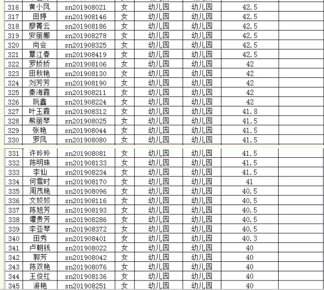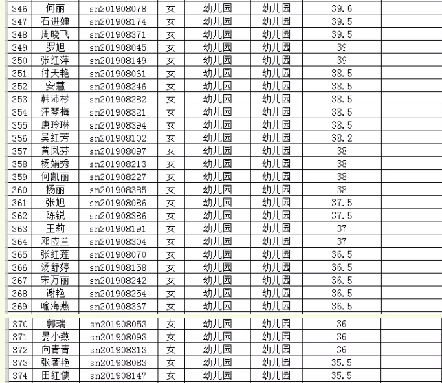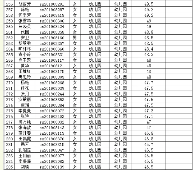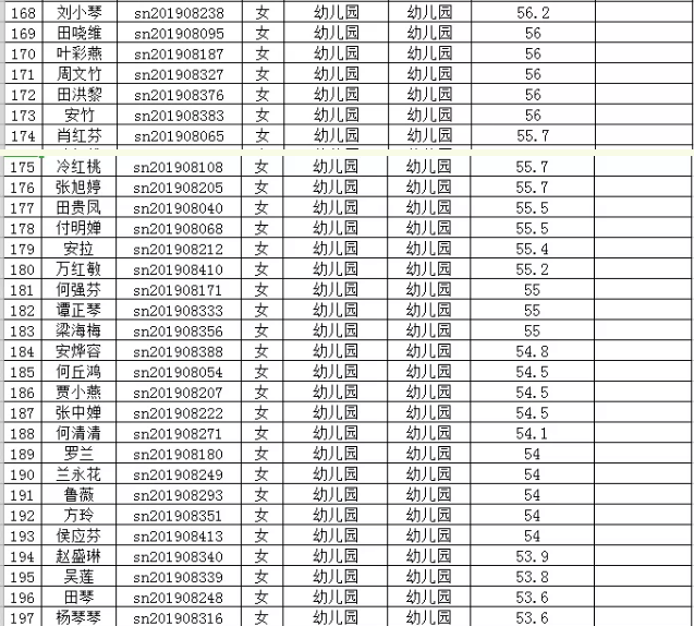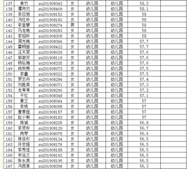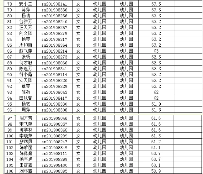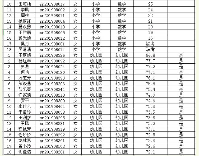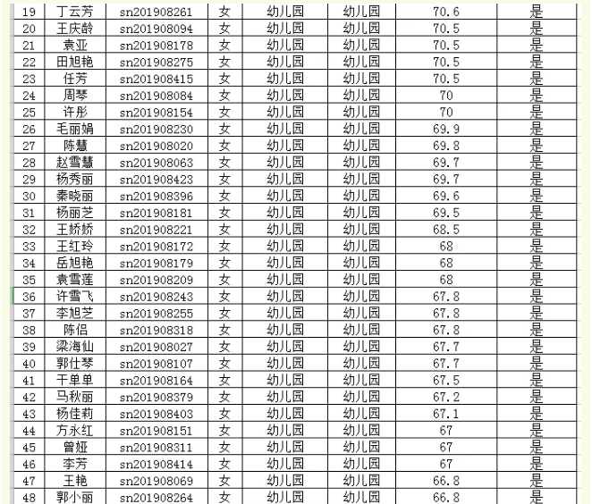 2019年思南縣特崗教師第二階段筆試成績統(tǒng)計表